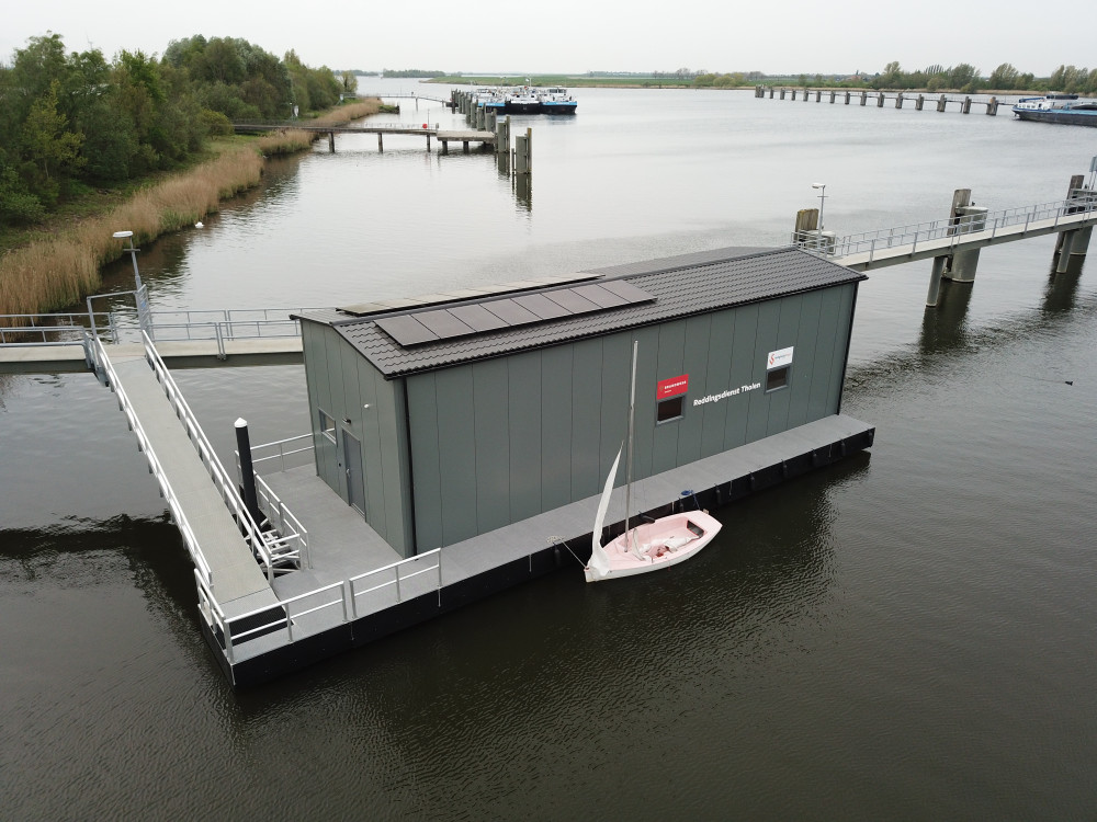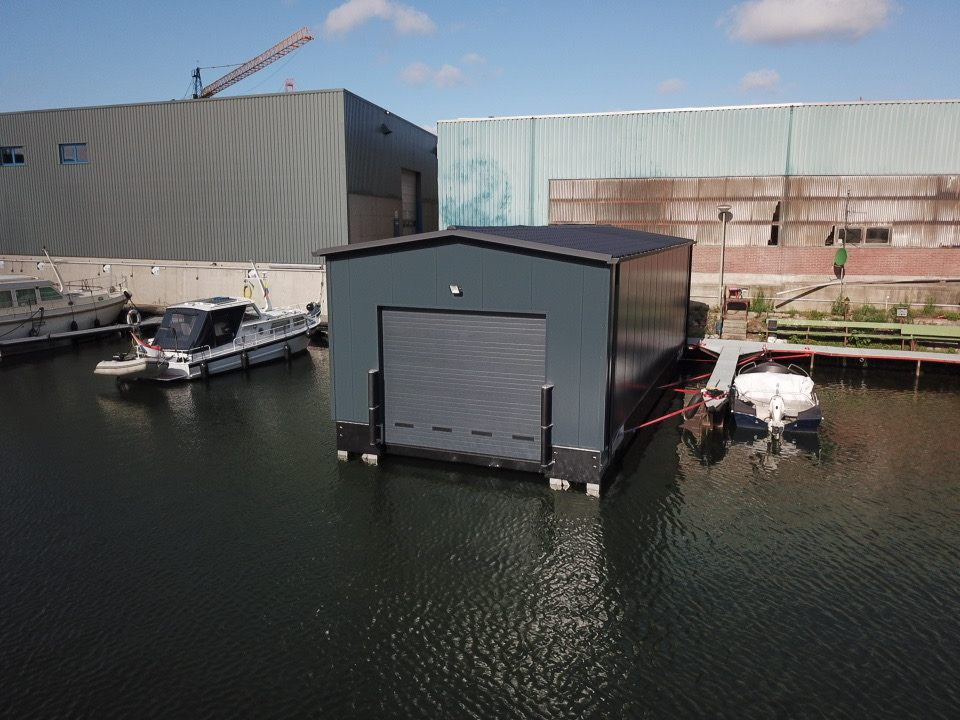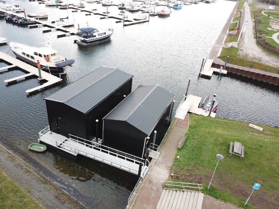 Een industrieel en robuust ontwerp kenmerkt de drijvende boothuizen.