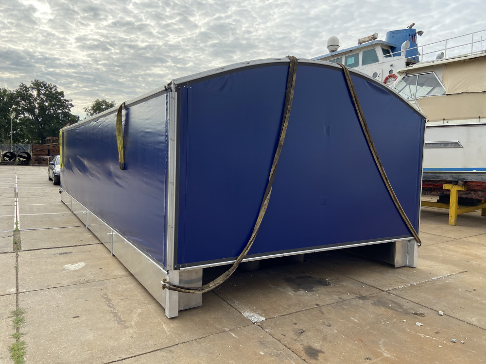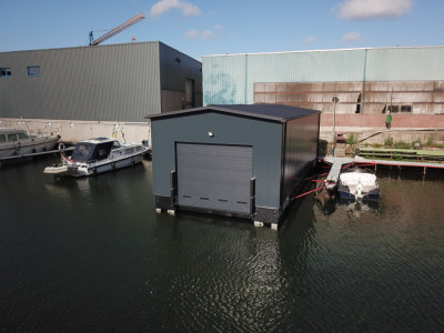 Naast de drijvende loodsen bouwen we ook eenvoudigere overkappingen met een liftsysteem.