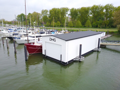 De boothuizen kunnen geïntegreerd worden met een bootliftsysteem en ze zijn verder naar wens uit te voeren.